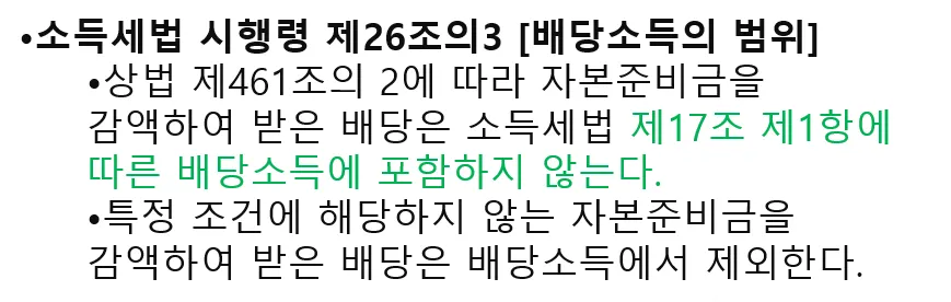 (자본준비금을 재원으로 한 배당은 비과세 (소득세법상 한도 없이 비과세 가능))