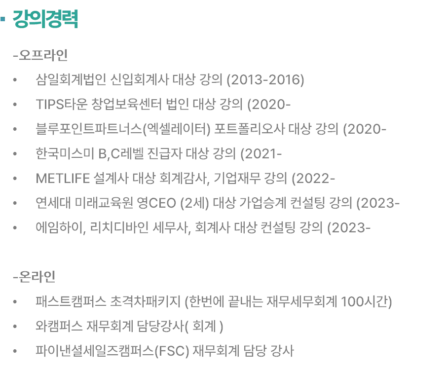 간단하게 제 소개를 하자면, 군 제대 후 2012년에 대학교 3학년 재학 중에 한국 공인 회계사 시험에 합격하여 국내 최고의 회계법인인 삼일 회계법인에서 수습 과정을 거치고 회계 감사 본부 출신의 공인 회계사입니다.